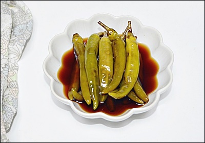 손질한 고추는 소금물에 30분 정도 담가두었다가 건져 물기를 제거합니다. 이 과정을 통해 고추의 아삭한 식감을 더욱 살릴 수 있습니다.