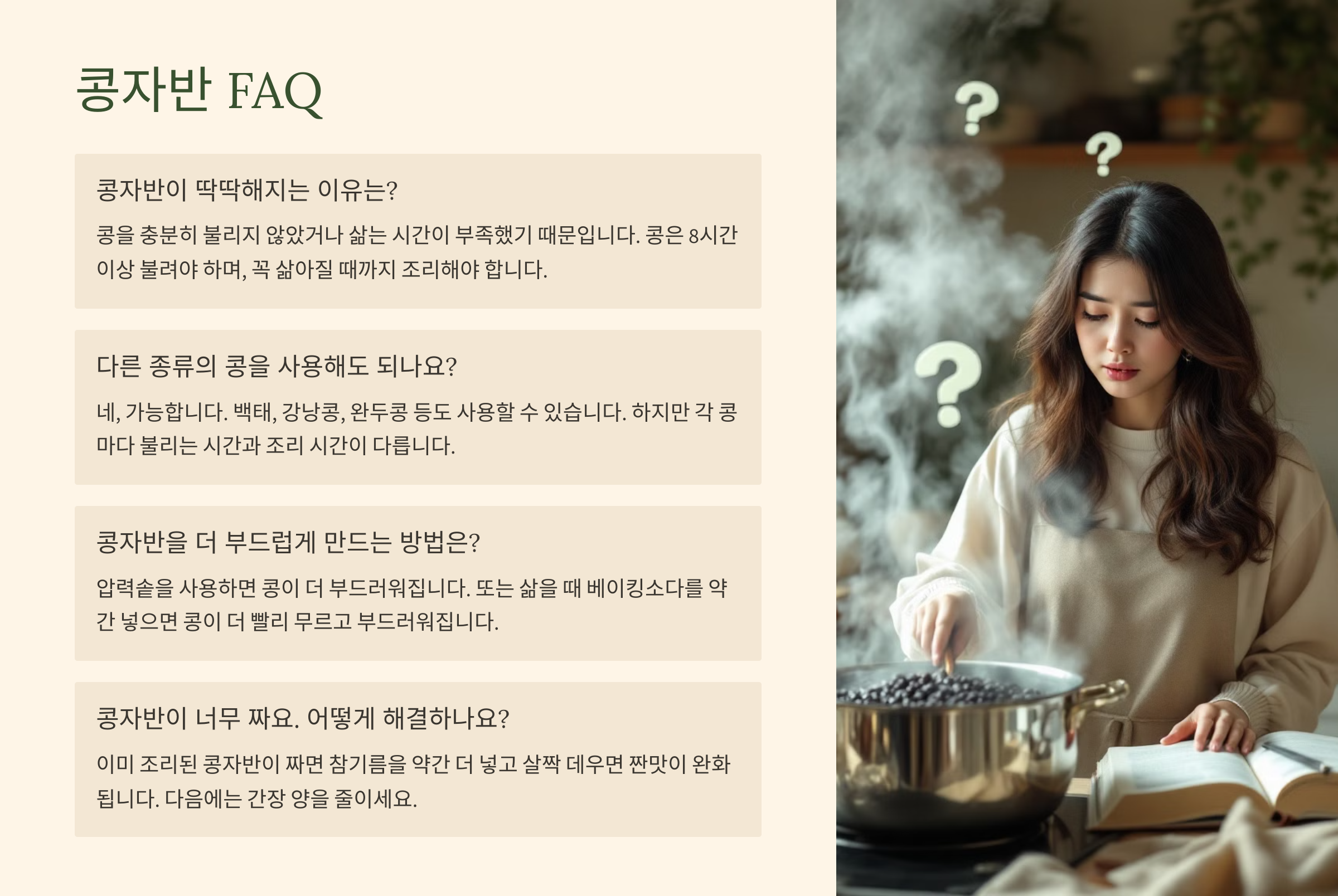 이제 마지막으로, 콩자반에 대한 자주 묻는 질문(FAQ)을 정리해볼게요! 📢
