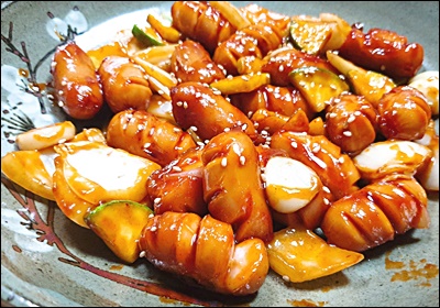 떡을 곁들이면 간식으로도 최고예요. 떡은 전자레인지로 살짝 데워 넣으면 달라붙지 않아요.