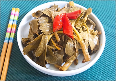 A1. 연한 잎·가는 줄기는 생절임으로 좋아요. 굵은 줄기는 10~15초 데친 뒤 얼음물로 식혀 담그면 식감과 보관성 모두 안정돼요.